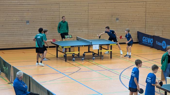 Den Anfang machten unsere Jüngsten am Samstagmorgen: Lennard Kiss und Nils Scherer traten bei den Jungen 13 sowohl in der Einzel-Konkurrenz als auch gemeinsam im Doppel an. Beide Nachwuchsspieler schlugen sich beachtlich und konnten sich in der Gruppenphase des Einzel-Wettbewerbs jeweils für die KO-Runde qualifizieren, Nils sogar als Gruppenerster. Als Gruppenzweiter musste Lennard im Achtelfinale ran, während Nils hier ein Freilos erwischte. Mit einer tollen Leistung konnte Lennard Nils jedoch ins Viertelfinale folgen. Hier war für Lennard dann aber leider Schluss: gegen einen starken Gegner, niemand geringeres als der spätere Sieger der Konkurrenz, musste er sich hier geschlagen geben. Doch noch war das Turnier für Lennard nicht vorbei, denn zusammen mit Nils, der sich im Einzel sogar einen Halbfinalplatz am Sonntag darauf sichern konnte, ging er noch zusammen im Doppel zu Werke. Im Viertelfinale der Doppelkonkurrenz setzte sich die junge Abstatter Paarung klar durch und qualifizierte sich so für das Halbfinale am Sonntag. |
