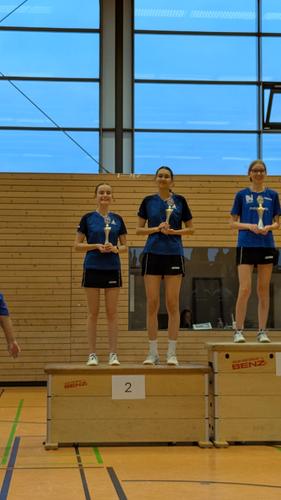 Nachdem Lisa und Liya im Vorjahr bei den Mädchen U15 alles abgeräumt haben, was es zu gewinnen gab (Gold im Doppel sowie Gold durch Liya und Silber durch Lisa im Einzel), traten sie in diesem Jahr altersbedingt zum ersten Mal bei den Mädchen U19 an. In drei Gruppen aufgeteilt gingen die beiden von der älteren Konkurrenz unbeeindruckt zu Werke. Liya spielte eine starke Gruppenphase, in der sie sich hauchdünn nur der Favoritin der Mädchen Konkurrenz geschlagen geben musste und qualifizierte sich als Gruppenzweite für das Viertelfinale. Lisa konnte ihre Gruppe sogar als erste verlassen und folgte Liya so ins Halbfinale. Auch im Doppel machten die beiden ihre Ambitionen deutlich und zogen mit einem klaren 3:0 auch hier ins Halbfinale ein. Bevor zeitgleich alle Halbfinalpartien ausgetragen wurden, stand noch die Mixed-Konkurrenz auf dem Programm. Hier stellten wir seit einigen Jahren auch wieder eine Paarung, Philip und Lisa gingen hier gemeinsam auf Punktejagd. Leider wurde ihnen gleich in der ersten Runde das spätere Siegerdoppel zugelost, dementsprechend schwer hatten sie es hier. Trotz einer klaren Niederlage spielten beide eine gute Partie und konnten die Favoriten immerhin vereinzelt in Verlegenheit bringen und zwangen sie zu einer konzentrierten Leistung. An dieser Stelle war das Turnier für Philip dann leider beendet, mit einer ausgeglichenen Einzelbilanz in einer starken Konkurrenz darf er aber dennoch sehr zufrieden sein. |