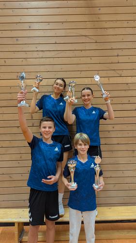 Unsere glücklichen Podestplatzierten bei den Jugend-Vereinsmeisterschaften 2025: Liya Kiraz, Lisa Lipper, Lennard Kiss und Nils Scherer |